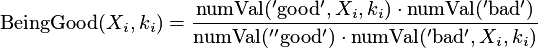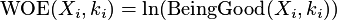 Weight of evidence ocenia który zakres obserwowanych cech charakterystycznych danych dodać lub odjąć z impaktu dowodu. Weight of evidence może być wyliczona w następujący sposób: