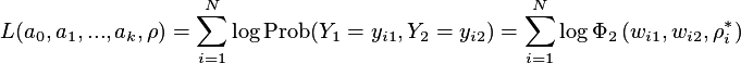 For the partial observability (censored) bivariate probit model the likelihood function has the following form: